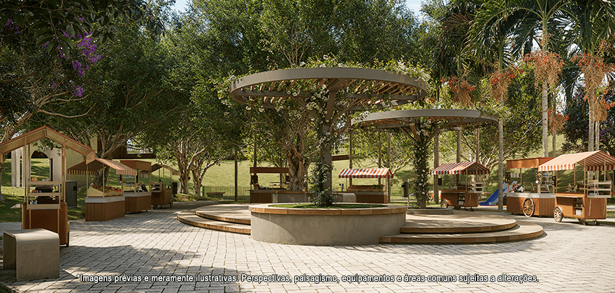 Com espaço feirinha, academia, quadras de tênis, quadras de areia, campo society, piscina adulta e infantil, espaço kids, pet place e muito mais!
